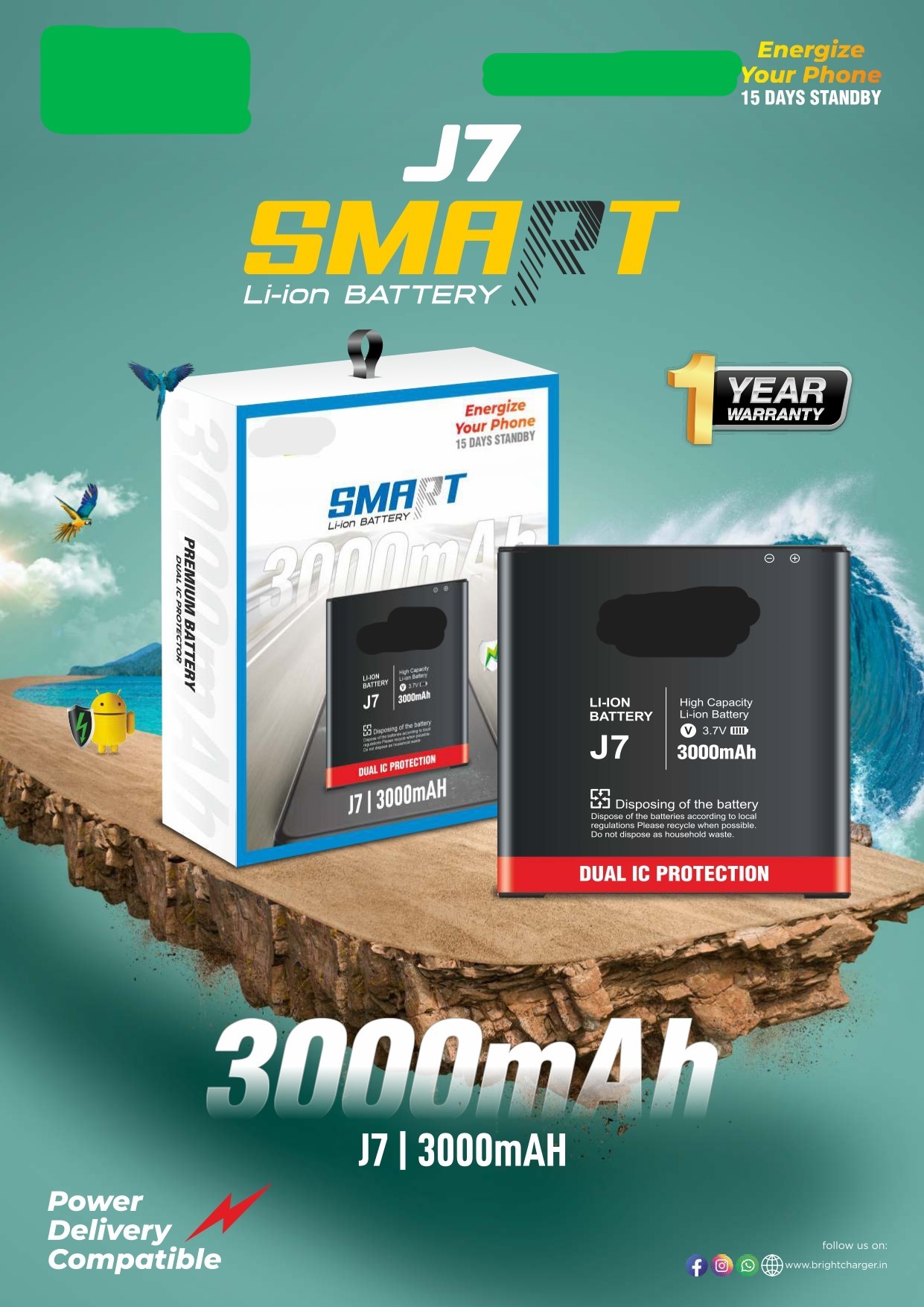 The Li-ion Battery J7 delivers 3000mAh of powerful energy, ideal for high-performance devices. Equipped with Dual IC protection, it ensures safety from overcharging, overheating, and short circuits, providing reliable and secure operation. Its Power Delivery compatibility allows for rapid charging, making it perfect for modern electronics. With a 1-year warranty, the J7 battery guarantees durable and long-lasting performance, giving you peace of mind with every use.