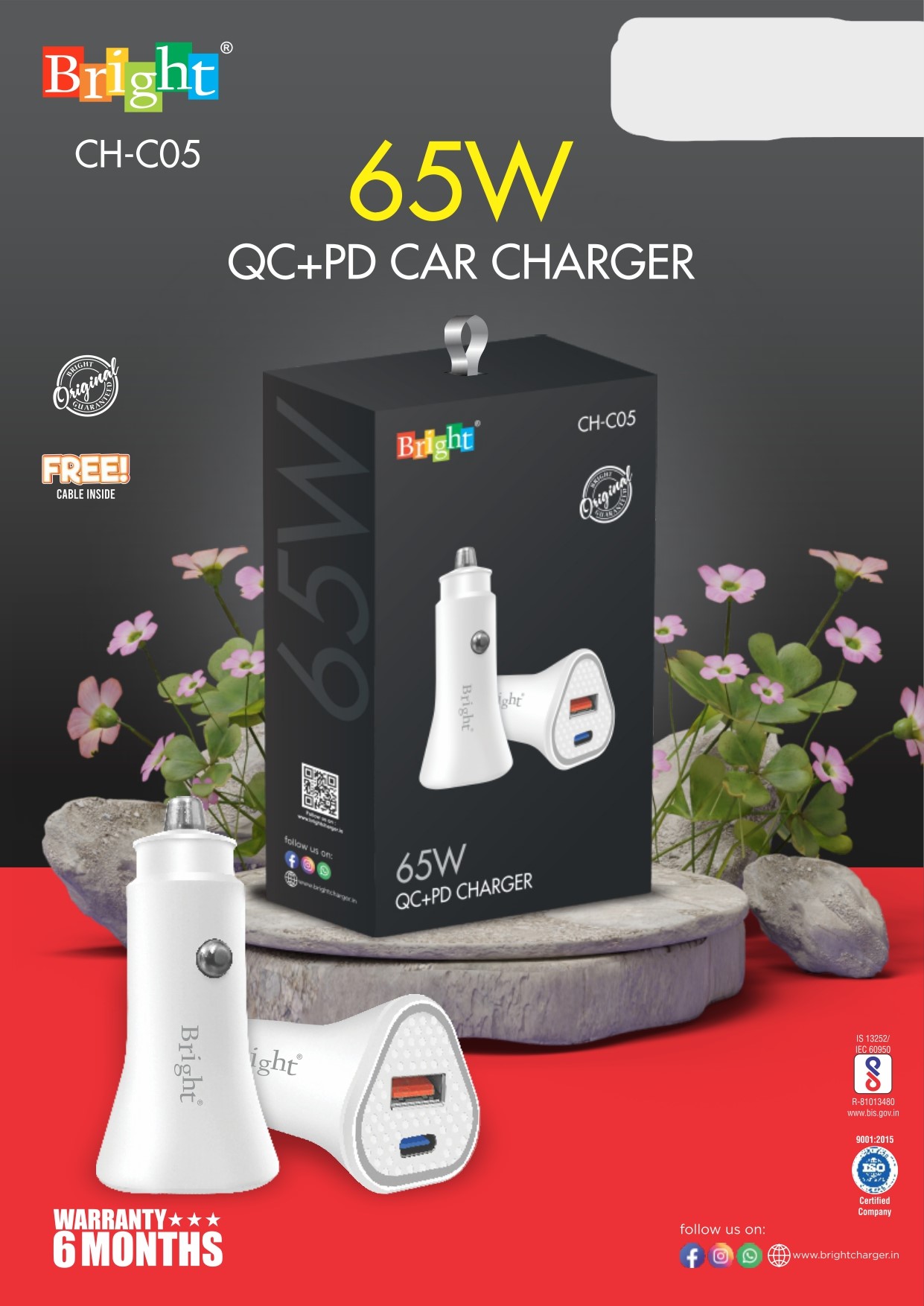 Power up your devices faster with the QC+PD 65W Car Charger, offering ultra-fast charging technology and a free cable included.