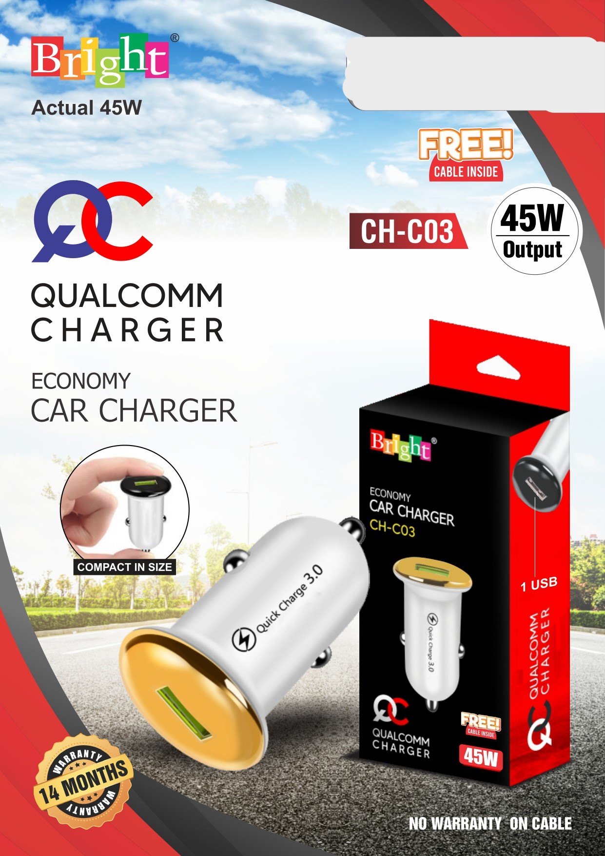 The Qualcomm Car Charger delivers an impressive 45W fast charging capability, ensuring your devices are charged quickly while you’re on the road. Its compact and sleek design makes it perfect for any car, blending seamlessly into your vehicle’s interior without taking up too much space. Equipped with Qualcomm’s fast-charging technology, it provides rapid power to smartphones, tablets, and other devices. Plus, it comes with a free cable, offering convenience right out of the box. A must-have for travelers and commuters who need reliable and speedy charging on the move.